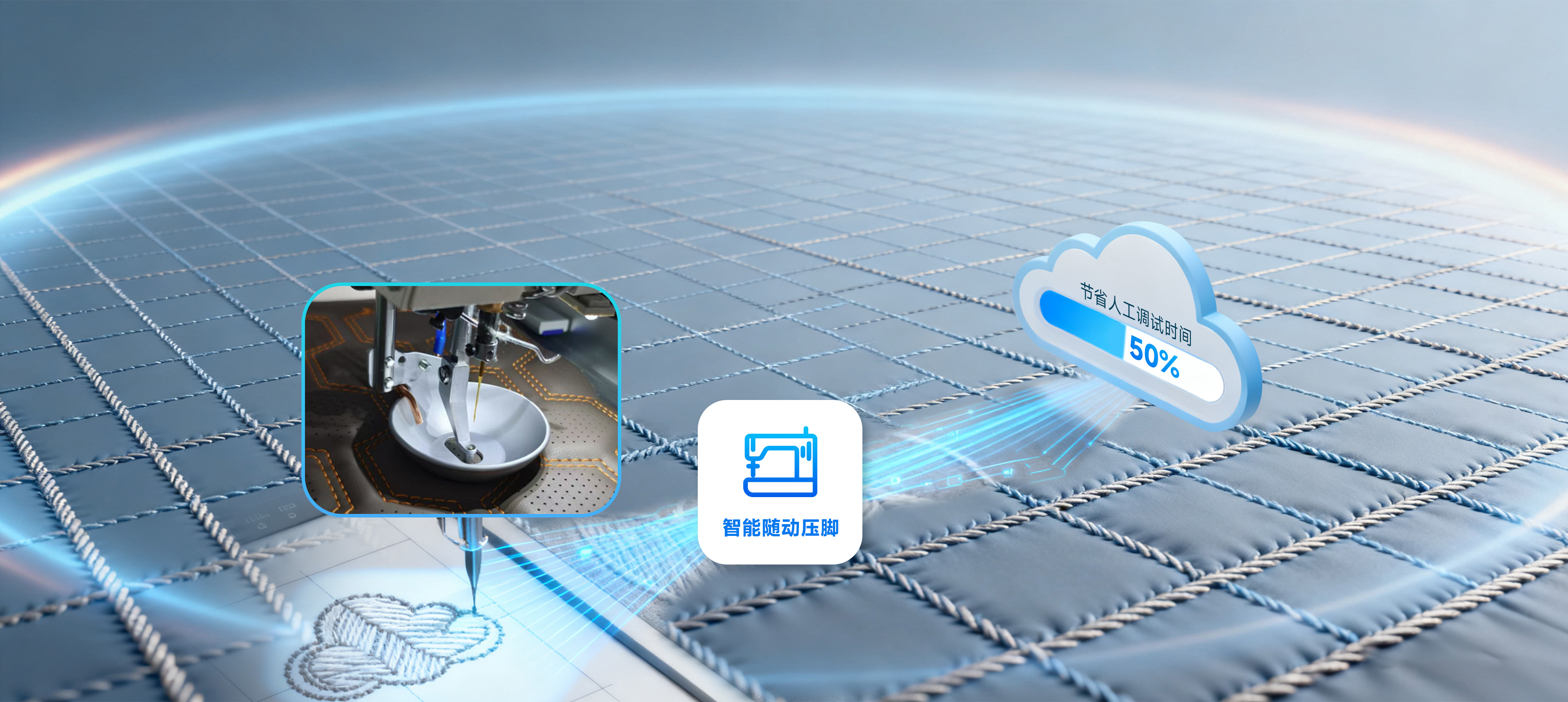 集成專(zhuān)利伺服算法,實(shí)現(xiàn)機(jī)針軸和梭軸高精度同步,精度達(dá)0.01mm,動(dòng)態(tài)調(diào)整縫紉角度,確保線跡始終正向